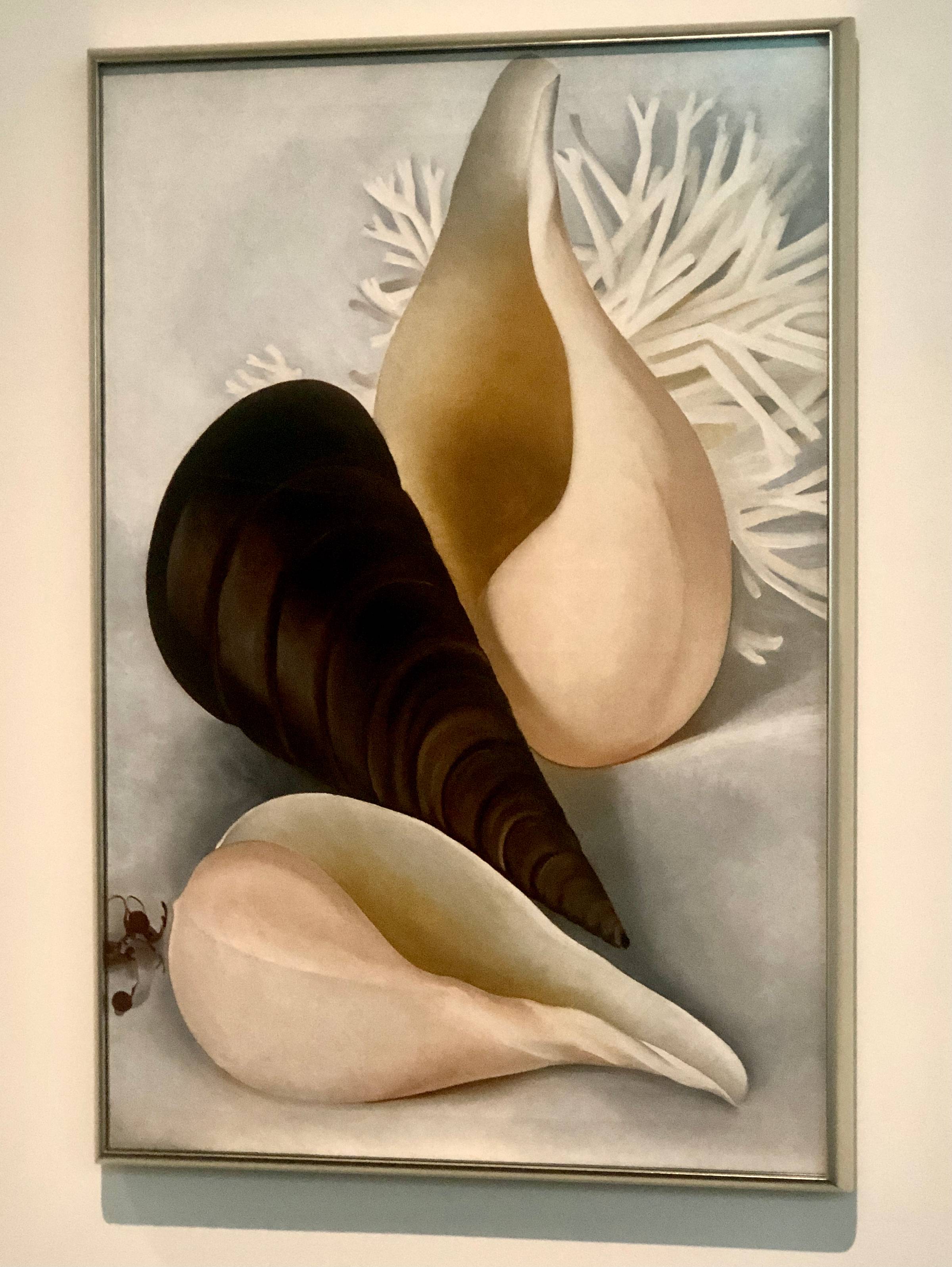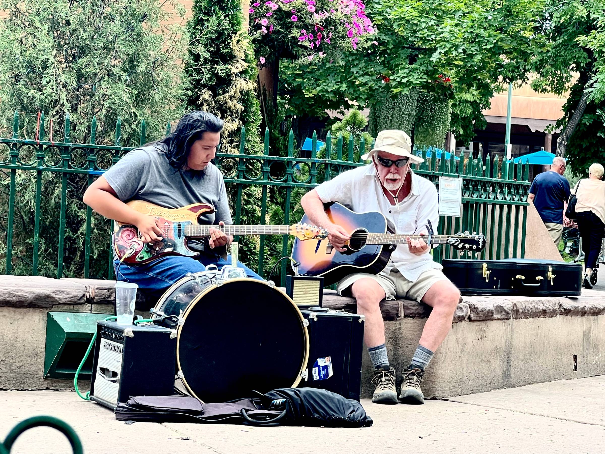 From Amarillo, we drove to Santa Fe, New Mexico for a couple of days and dined at two of our favorite places, La Fonda and Geronimo. I jammed with Twinhorse on his 22nd birthday on the Plaza, where Twinhorse has been playing since he was 11. I bought Kimberly some turquoise and silver earrings from the Native American jewelers. We enjoyed the Georgia O'Keefe Museum and her paintings of flowers, mountains, skulls, and shells. Then, while hiking along the Santa Fe River, we found a shell that didn't seem to belong, a small, worn conch that somebody must have planted in the river. Or, was it some other force from an ancient past that placed an ocean shell in a magical stream in the Land of Enchantment?