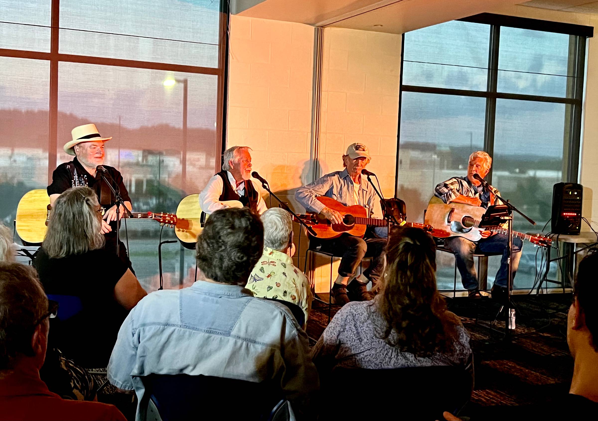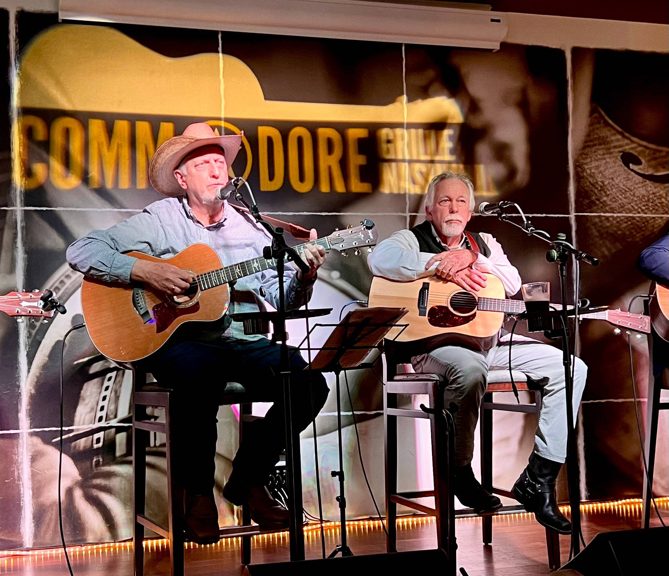 Then, there are the shows. I play regularly at the Commodore, Copper Branch, Bad Axe, Stompin Grounds Writers Rounds, and Twin Kegs II. I've had a chance to host rounds at Copper Branch. I play Music for Seniors 3 or 4 times a month. I help friends from out of town get bookings, like Trevor Valentine from Bristol, England. Wayne Willingham and John Terry are planning upcoming visits. I've played some new places like Just Love Coffee, Hotel Preston, Aloft Hotel, and I had my best show yet, "Vue in the Round" with Arts Bellevue, hosted by Les Kerr. It featured hit songwriters Wood Newton and Jerry Salley. Their friends Linda Davis and Lang Scott came up and did a couple of songs, too. I learned so much just by sharing the stage with these legendary songwriters and artists. Their songs are great, and they know how to tell a good story to get a laugh. Many thanks to my good friend, Les Kerr, and to Lee Jones and Glen Biggs from Arts Bellevue.