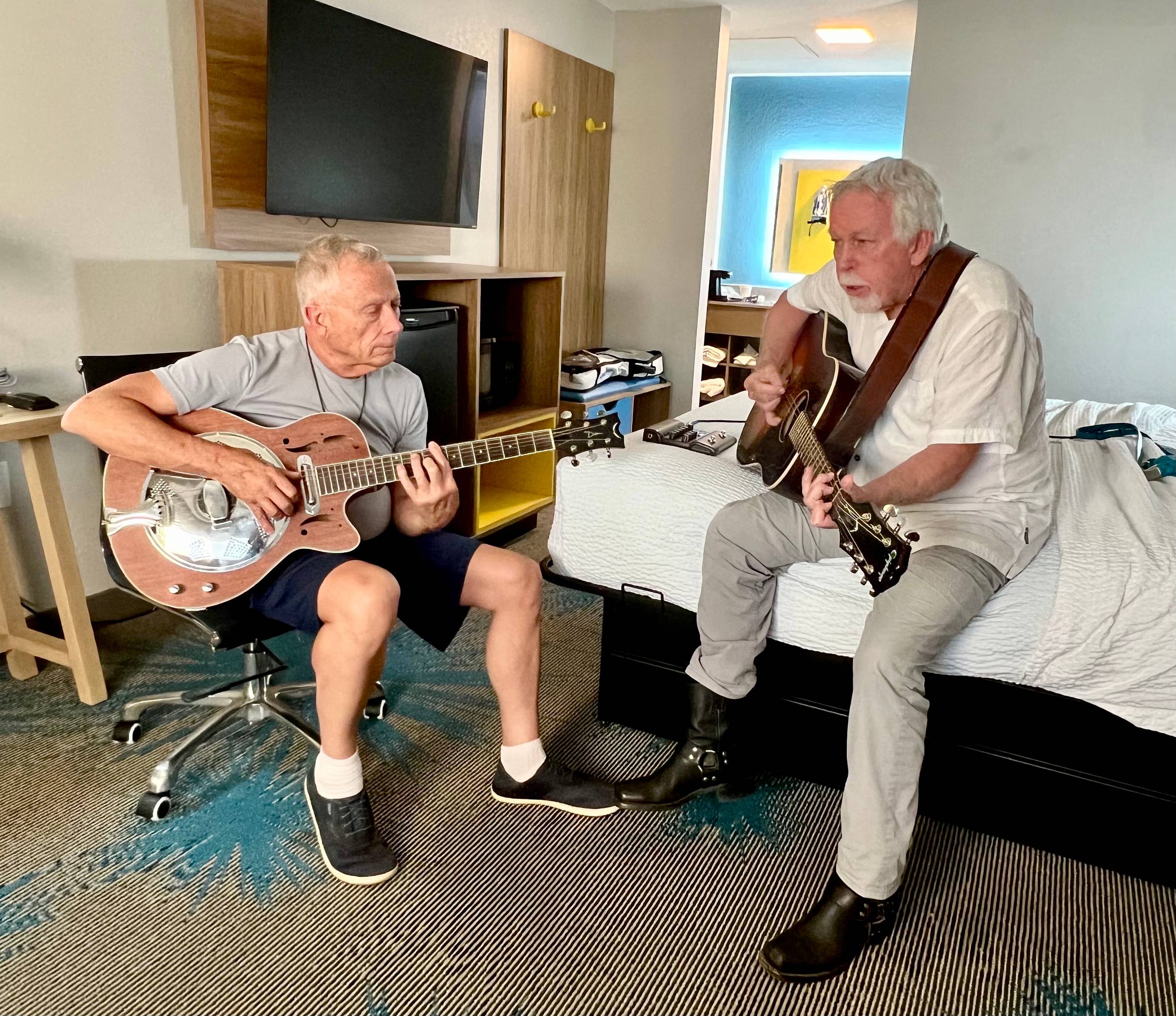 After that Kimberly and I drove through the wind turbines, solar fields, and pump jacks of West Texas to Amarillo to visit John Pronk. We jammed a bit, and reminisced about the Hot Corn Band and our late friend, Tim Hamilton. John's getting gigs with a new band. He's picked up the banjo again, too.
